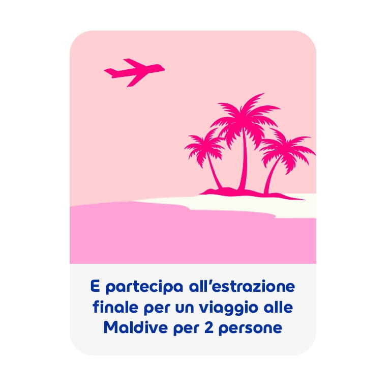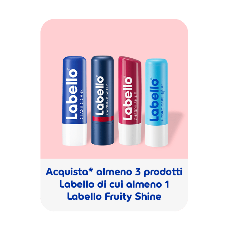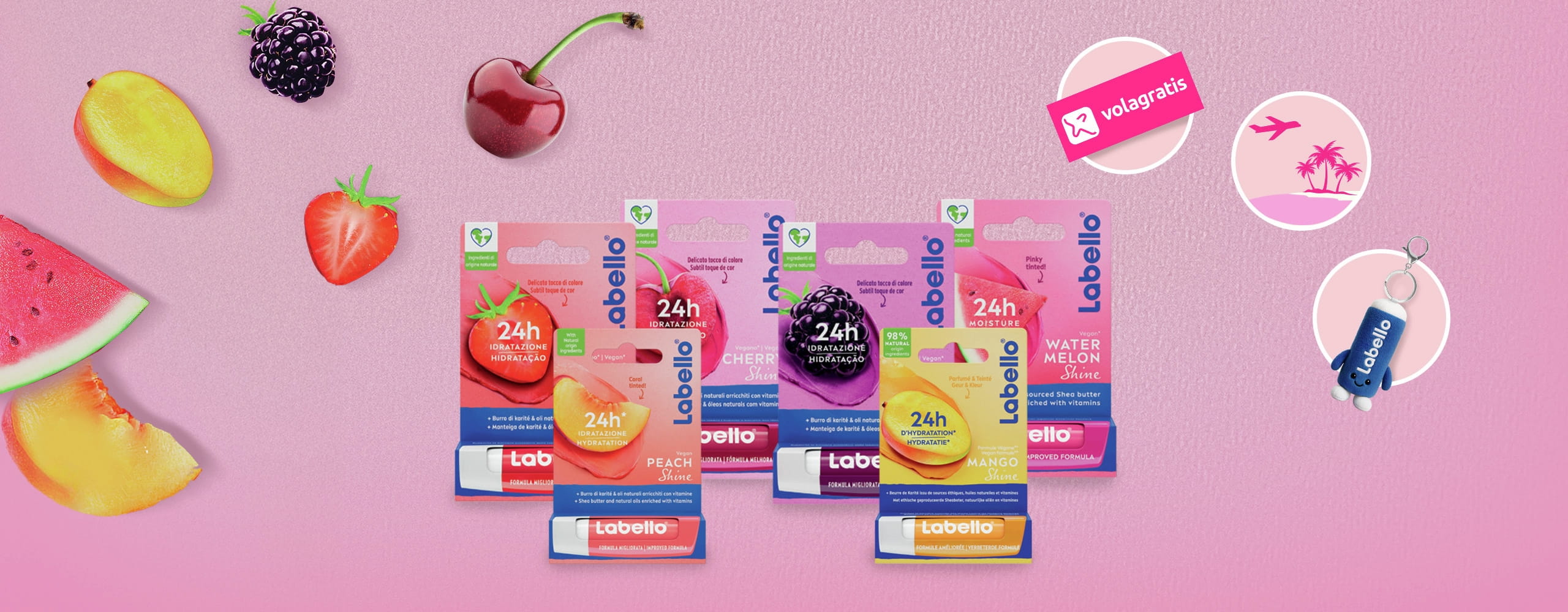 Approfitta della nuova iniziativa di Labello*: acquistando** almeno 3 prodotti Labello, di cui almeno 1 Labello Fruity Shine, puoi vincere un portachiavi Labello e un voucher Volagratis di 250€. Inoltre, puoi partecipare all’estrazione finale per vincere un viaggio alle Maldive per 2 persone!